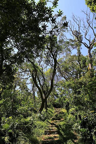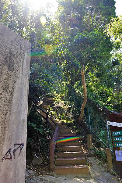 這裡會有一小段相當陡峭的之字形上坡。階梯旁的水泥牆上可見有三角點的標誌,想要踩點,往這裡走就對了~