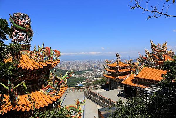 正殿兩旁均設有觀景平台,視野超好,甚至可以看到八里觀音山。
