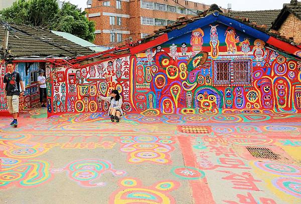 短短一段150公尺長的巷道,從屋簷、圍牆、路面到郵筒,黃老先生畫出了五顏六色的線條與圖案,這些圖案充滿童趣與喜感,洋溢著年輕歡樂的氣氛!