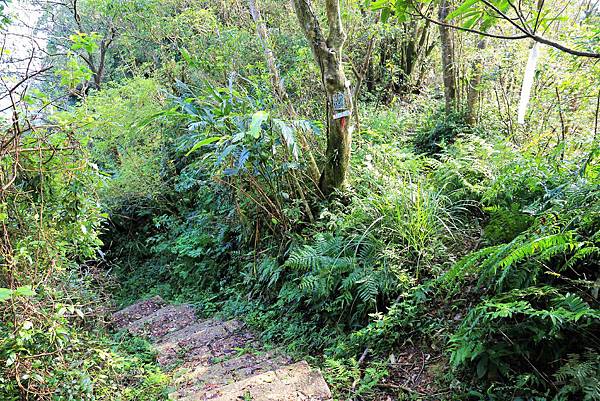 登頂前的最後上坡。此處有一叉路,正前方是來時路,左側則是往更寮古道。