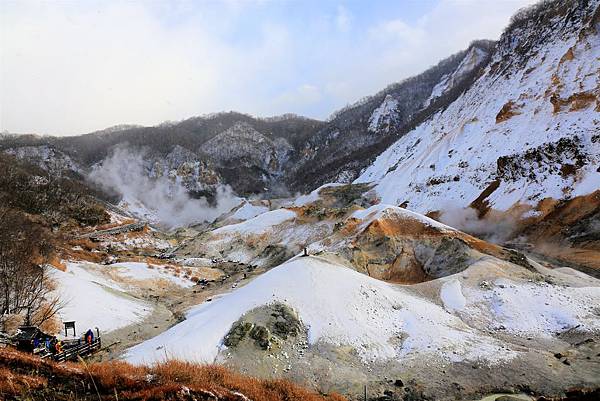 登別地獄谷位於北海道的支笏洞爺(Shikotsu-Toya)國家公園的園區內。其由來是日和山的火山開始運動所造成,經過數千年多次水蒸氣爆發所創造出的特殊地理環境,直徑約450公尺,面積約11公頃。地下的高溫岩漿產生了火山能量,現在此區仍然有蒸汽或溫泉噴出的現象。其實當初來北海道沒有做太多功課,只聽說來地獄谷可以看到猴子泡溫泉就訂機票了...孰不知猴子泡溫泉是在長野縣的地獄谷 XD 但是,登別地獄谷除了沒有猴子外,他的壯麗景色絕不會讓大家失望,大推!