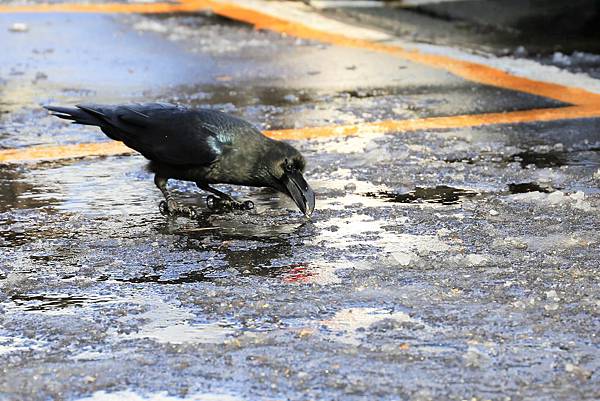 R~R~R~R~R~,相信大家來到日本一定對這個RRR的叫聲相當熟悉,沒錯,他就是烏鴉,正在吃冰的烏鴉!!!相當新奇,他們都不覺得冷嗎 @@?