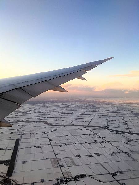 北海道因位於高緯度地區,冬天太陽很早就下山了!飛機降落前,窗外的農地已是白茫茫一片,當時明明才下午3點多,但太陽早已西下,很像在台灣下午5-6點的樣子。大概在4點後沒多久,天空就會漸漸變暗!
