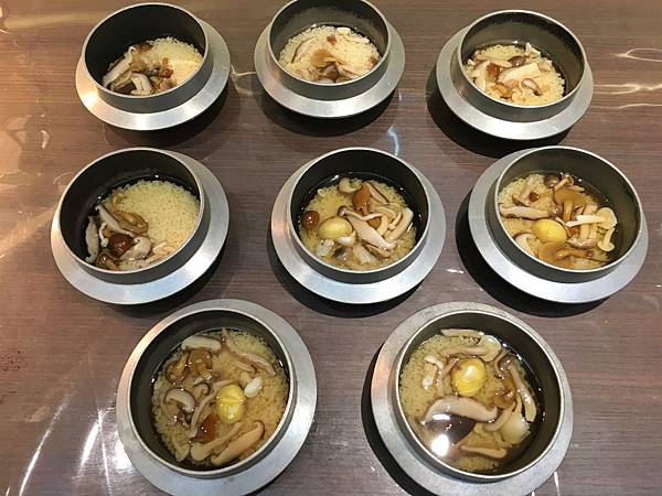 這是釜飯,也是這裡限定的餐點之一。飯店會一小鍋一小鍋飯配號,只要拿一鍋和固態酒精回座加熱悶煮就可以了!鍋內有香菇、栗子,飯煮熟後,會有個香甜味,相當好吃!