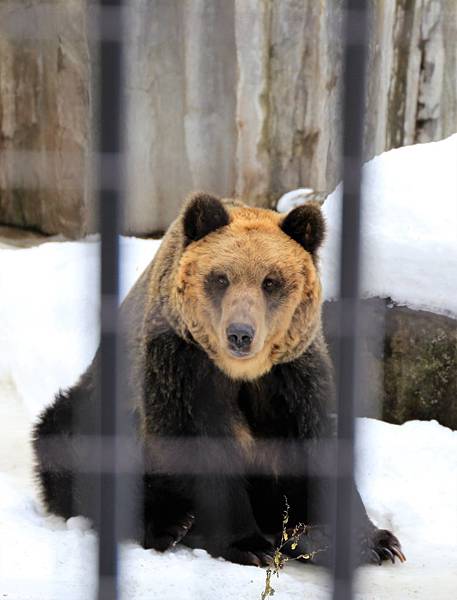 同樣位於猛獸區的北海道棕熊,眼神帶點淡淡的無奈與滄桑,大概想出來伸展筋骨吧!