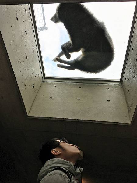 北極熊的外表相當憨厚可愛,但畢竟還是猛獸之一,園方在北極熊管下方另有設計通道,可在照片內的半圓形透明罩中,超近距離觀察北極熊。