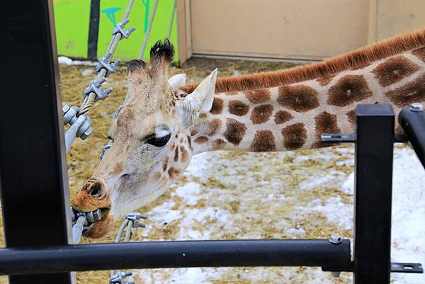 另外一隻長頸鹿,不知為何,他很愛含+舔柵欄的鋼索,一臉享受樣...