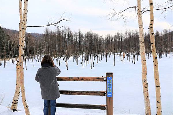 消波塊旁其實就是青池了,距離入口處相當近,約走1-2分鐘就會到達。遠遠看,其實還是可以發現結冰的池水有微微的藍綠色