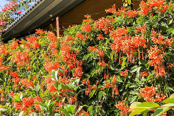 入口處停車格旁的人家種滿炮仗花,當時的花況還不錯!