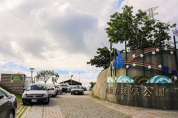 虎頭山環保公園入口,雖然公園有提供停車場,但每逢假日人潮眾多,車位總是供不應求,車子都停到滿出來。