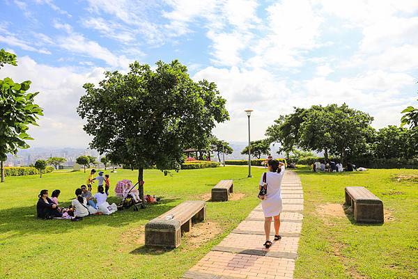 虎頭山環保公園一景,處處可見由遊客在樹蔭下野餐聊天。