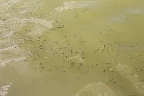 湖內魚群眾多,只要人一靠近湖邊,魚群們就會蜂擁而上,應該是習慣人們餵食飼料了吧!