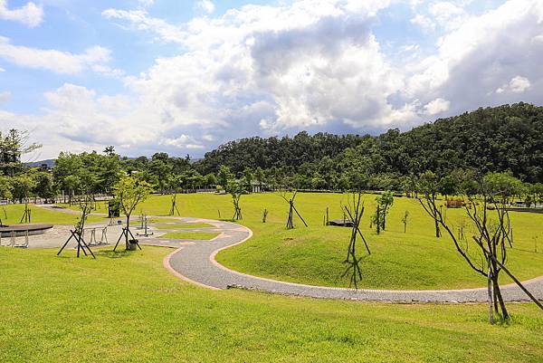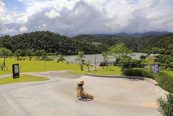 公園以龍潭湖為中心,三面環山,四周有環湖道路,可在入口處租借腳踏車環湖。入口處則是一整片的小草坡~