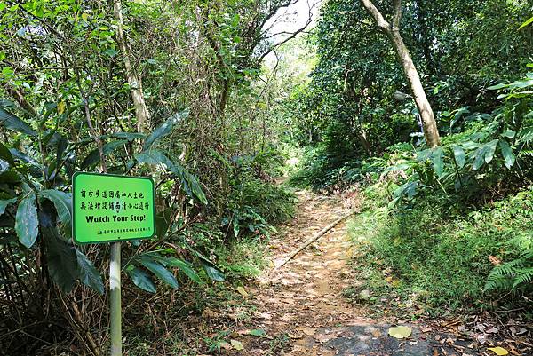 看到這個告示,原來,這短短1公里多的登山步道,居然還有一部份位於私人土地內。後續就是碎石泥土的登山小徑。