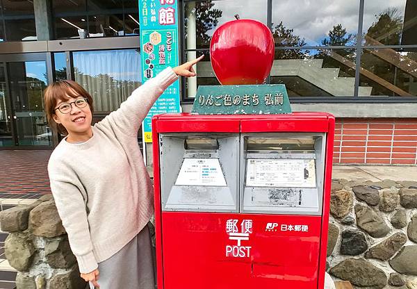 青森是日本蘋果的故鄉,連弘前市公所前的郵筒上都擺了一顆超大蘋果。