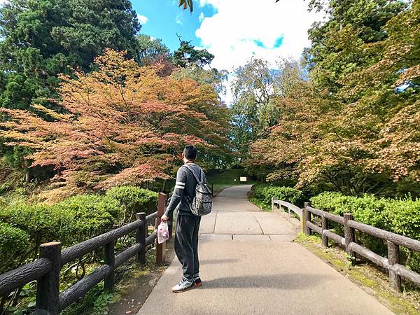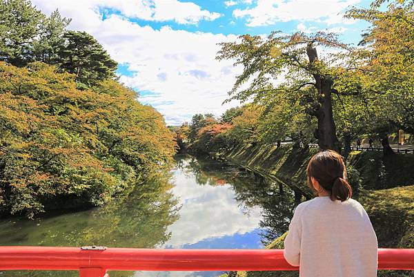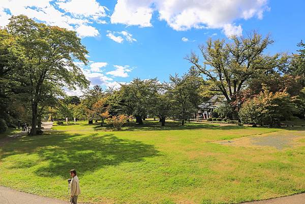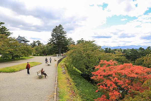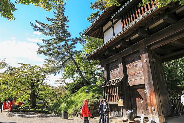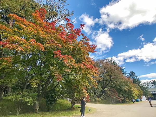 弘前城本丸內一景,照片中有8成的綠葉都是櫻花樹!櫻花季時一定要再來一次~!平地唯一看到的紅葉大概就是右下角這棵樹吧~