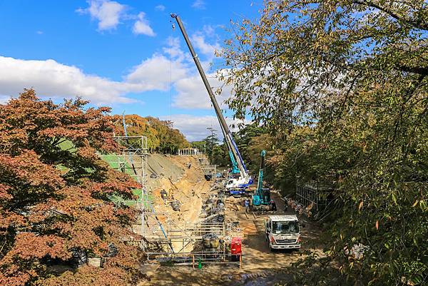 這裡可以看到城牆整修的狀況,原本的天守就位在正前方。
