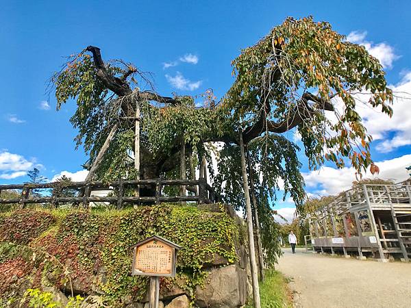 另外一棵古名木,枝垂櫻。園方在靠近城牆旁搭了一座觀景台。