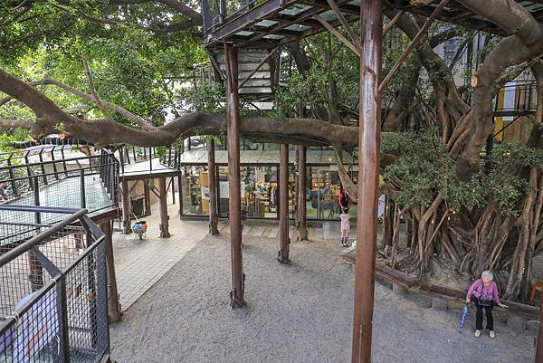 該天空步道因盤繞著一顆百年大榕樹,且貫串三罐大糖蜜罐而得名。依製糖流程的金、木、水、火、土五行概念設計為玻璃光雕五行蜜橋,是一座具有禪味意境的時光之橋 (走進、走出,再走進)。