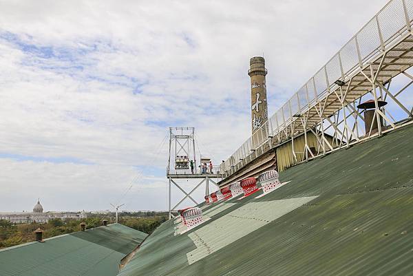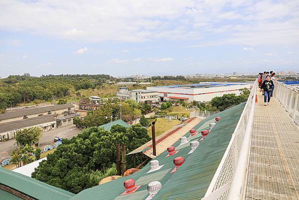 接下來,位於夢糖工廠頂樓的天堂路,更是精彩,長長的天空步道貫穿整個鐵皮屋頂。除了可遠眺大高雄及大臺南的交界處外,更可看到中央山脈及奇美博物館。如果遲星光票入場,更是應該來這裡看夜景!