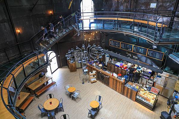 接著來到蜜橋咖啡館,位於糖蜜三連罐的中間,是直徑空間最大的儲蜜槽(直徑13,560 mm 高9,115 mm)。