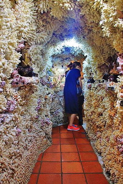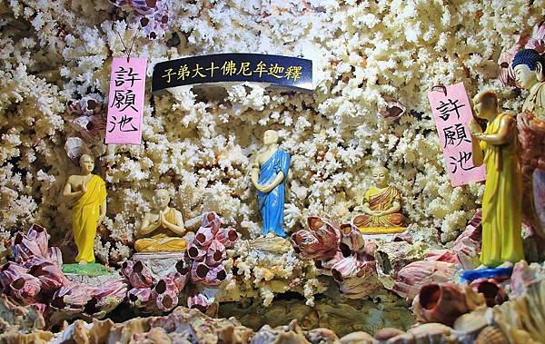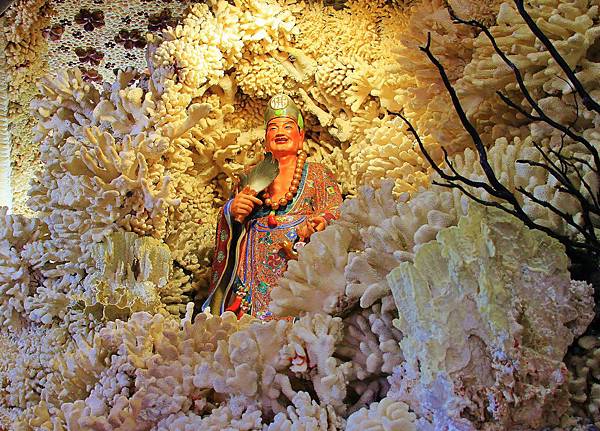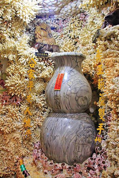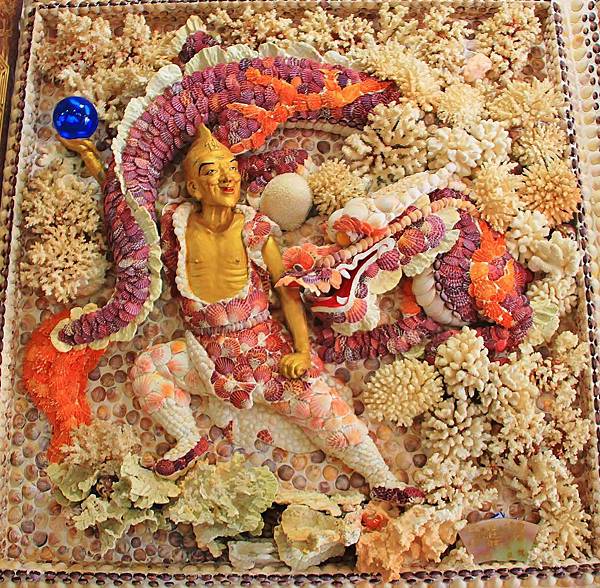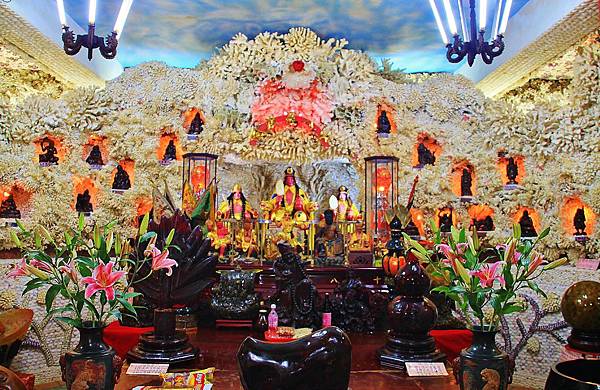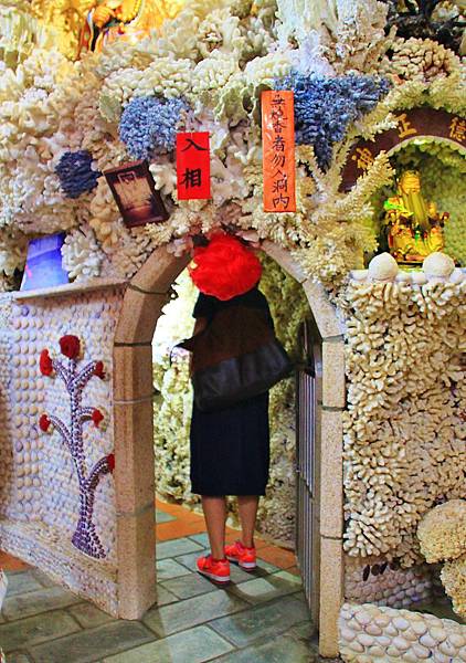洞內全是珍貴的珊瑚堆砌佈置而成的,洞的中央,還可以看到全部由珊瑚、貝殼所雕塑而成的濟公像,非常壯觀。