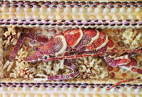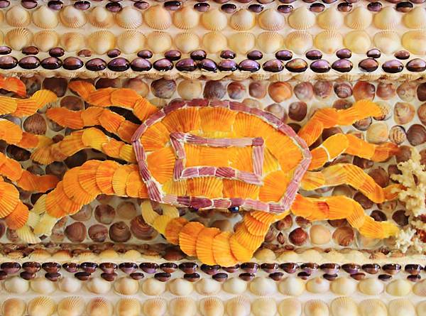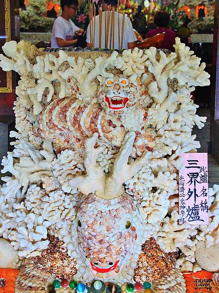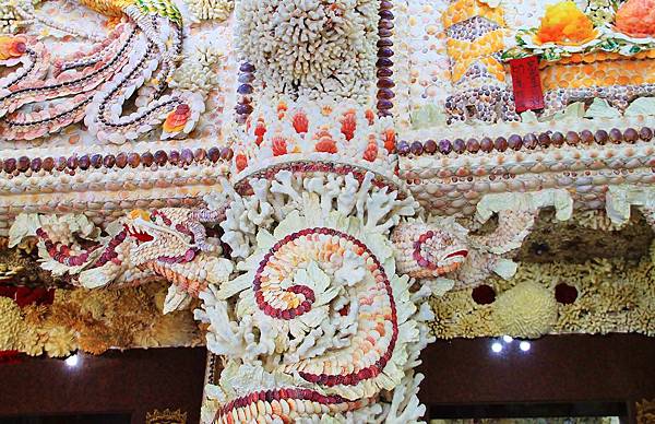 貝殼廟裡的香爐也是用珍貴的珊瑚做成的,廟宇裡面的圖案也都與海底有關係。