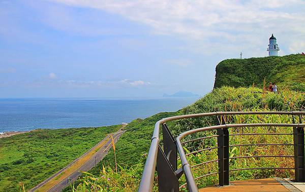 步道一景,燈塔與龜山島遙望,山腳下則是省道台2線。