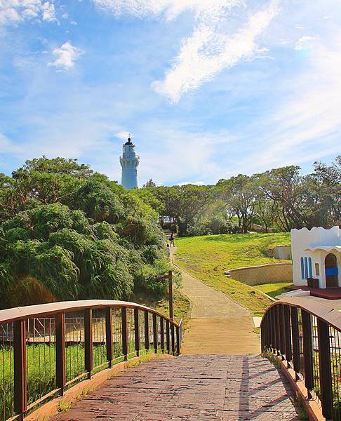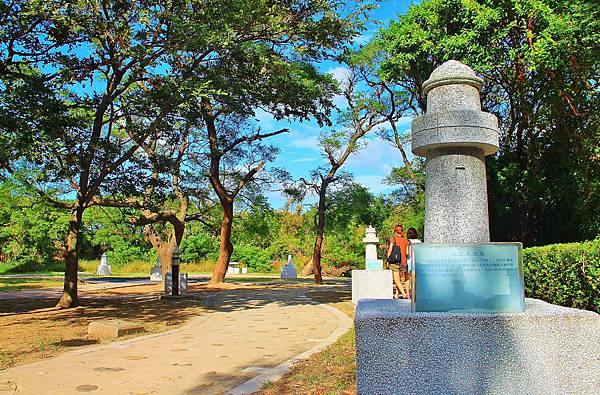 燈塔旁的"燈塔廣場",步道旁擺放有台灣各地燈塔的縮小模型,非常特別!