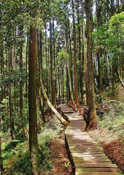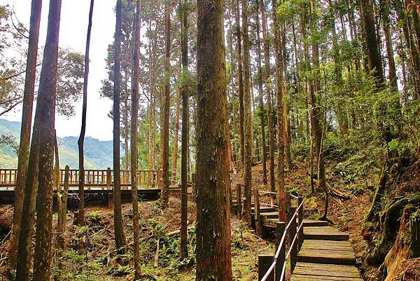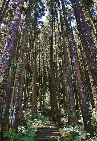 回程經過越嶺古道,看這高聳入天的杉木群實在令人心動,只好脫隊前往,朝置高點的觀景台出發!