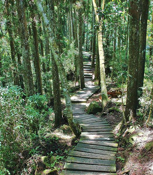 森林步道,越嶺古道往觀景台。此時已經氣喘吁吁、滿頭大汗了!
