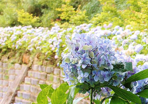 自然原始的山林丘壑,從春之山櫻、杜鵑、石楠粉墨登場,接著夏宴以波斯菊、繡球花到深秋楓紅,臘梅飄香,粧點出奼紫嫣紅的彩色世界,全年花開不斷為賞花人之最愛。雖然這次巧遇繡球花季,但其實已有部分的花叢開始凋零。