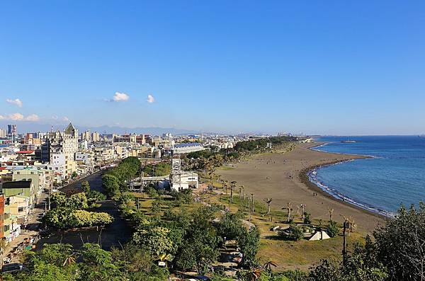 站在旗後砲台上,遠眺整片旗津海水浴場!