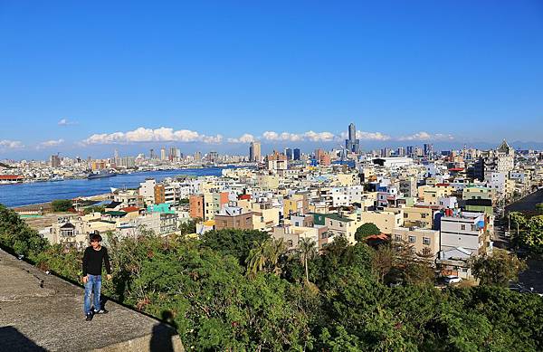 旗後砲台一景,對面較近的山頭就是高雄燈塔的位置。左後方是壽山以及中山大學校址。