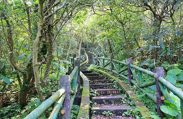 雖然說直接從大武崙砲台旁的登山口進入路徑最短,很快就可登頂,但總覺得就缺少了"爬"山的感覺。所以,這次選擇從情人湖公園內的環山步道登山口起登!