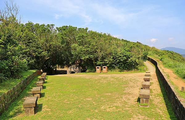 大武崙砲台一景,此處為北稜堡。 大武崙砲台利用地形設計出北、南、東三座稜堡,句有聚集較多兵員、增加射界的效果,還可以構成交叉火網,防止敵軍登陸或靠近。照片中的溝渠是避彈壕,深1.8公尺。