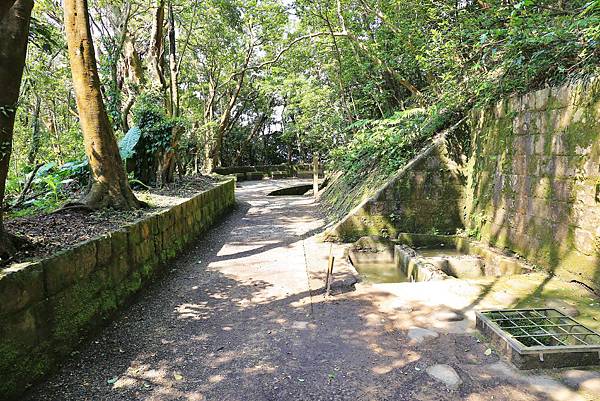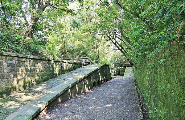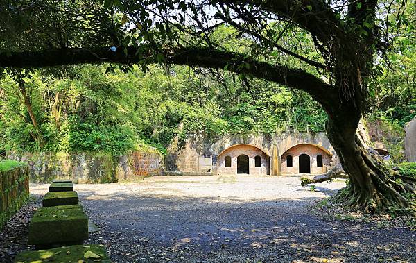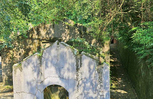 大武崙砲台入口通道,設於背敵面的緩坡,兩側有高大林木,隱蔽性高,有利人員進出和物資的運送。