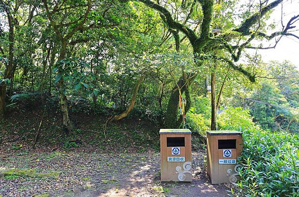 真正的入口處位於這兩個垃圾桶的後方,可以看到後頭的數枝上掛滿各登山隊的布條,從這裡走進去就對了!