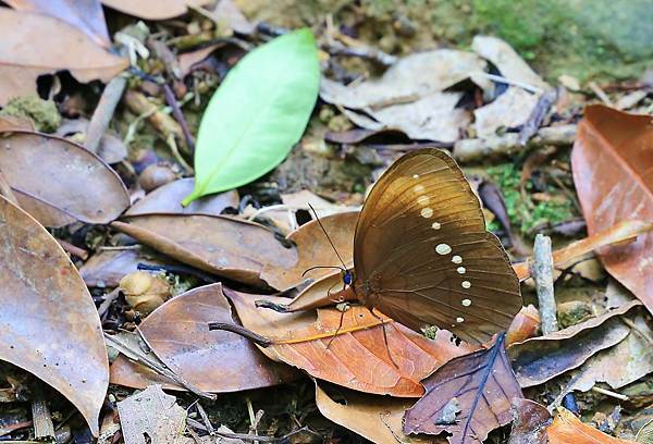 串珠環紋蝶,學名Faunis eumeus,屬環紋蝶科,展翅約50-60mm,翅膀表面暗褐色,上翅端部具黃色斜帶斑紋, 翅腹面暗褐色,上、下翅各具一串白色的圓斑,此為命名的由來。本種為外來種,1998年於基隆發現。