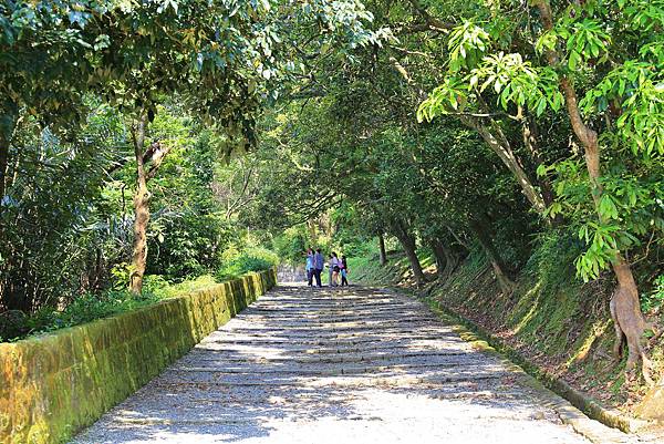 一開始就是陡上的磚頭階梯,儘管樹蔭林立,還是走得滿身大汗!