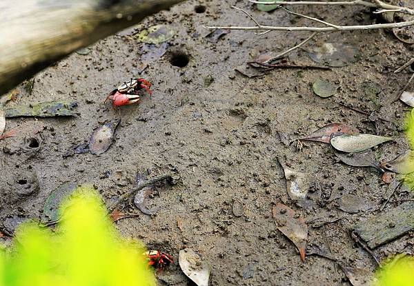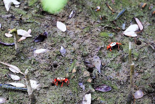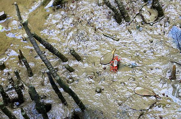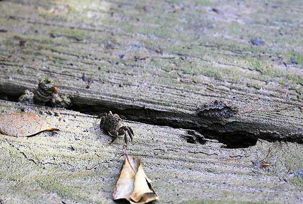 走在木棧道上要稍微注意一下,有些螃蟹可是會爬上來跟你爭道哩!