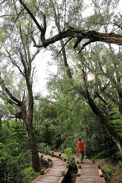 木棧道轉了個彎後,紅樹林不見了,幾乎都是木本植物和低矮的灌木,還以為是到了山上呢!