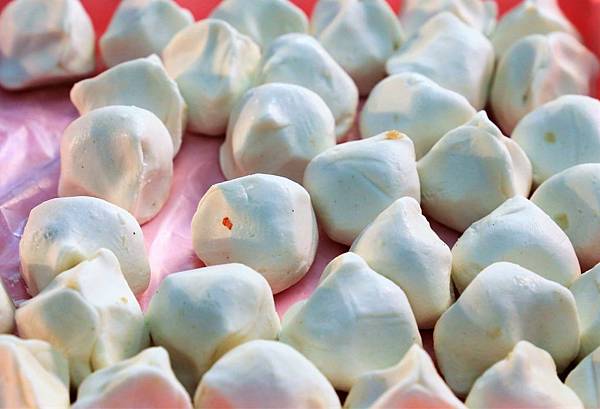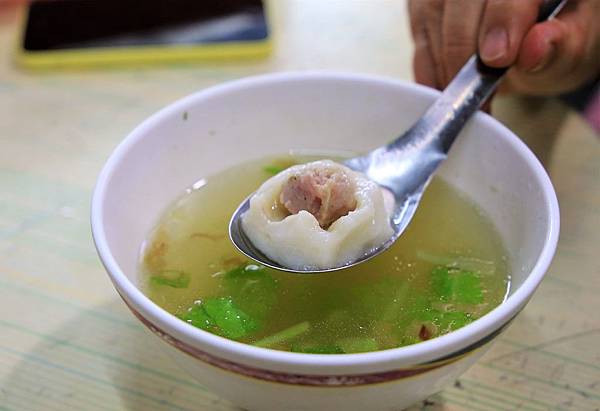 接下來,鎮店之寶,鹹湯圓登場!!由於是從手工捏製,所以略呈三角形,三角形頂端應該就是捏合的縫縫。這些都是經典蔥豬口味,老闆娘說,有空她會再多研發幾款