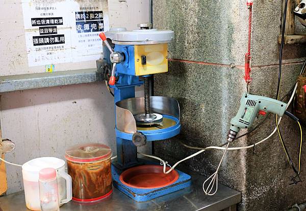 印象很深,第一次來買剉冰的時候,看到右邊這台鑽孔機為之驚艷!!原來是用來打泡泡冰的神器 XD 順便推一下他們的泡泡冰,花生+花豆口味,非常濃郁好吃又消暑,本店招牌之一!!