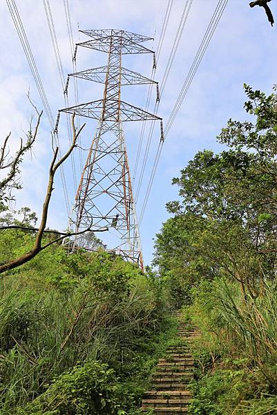 土庫岳登山步道一景,從200巷登山口起登後,一路上坡會遇到高壓電塔,算是第一個小山頭。