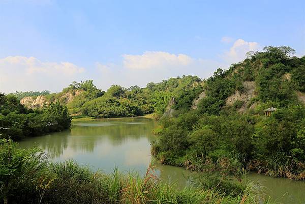 文化展示館旁有搭建一座觀景平台,入園之前可以在此欣賞園區風光。聽長輩說,大約在10年前左右曾經造訪,當時園區還在整頓,光禿禿的一片,沒想到現在居然綠意盎然!看來水土保持和綠化開始有了成效。