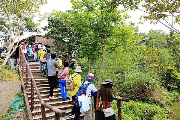 進入園區,沿著步道一路往下走。今天剛好遇到有人來導覽,全部的人都聚集在前方的斗笠涼亭。