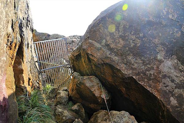 茶壺上頭的模樣...其實有點可怕,有懼高症的人可能會有點腿軟。視野不佳,只能從石縫中看到外面的景色。左手邊的石縫就是通往半屏山的道路。