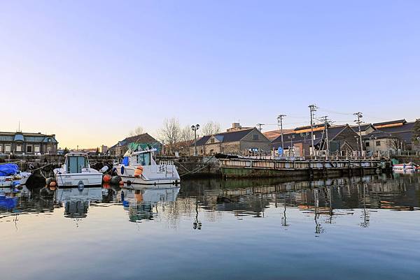在過去就是北運河的終點,照片右側岸邊停靠了一艘"駁船",現已退役僅保留下半部船身和甲板,變為人行道的一部份。駁船是為了將停靠中的船隻貨物沿著運河運送至各倉庫所設計,甲板高度與運河河堤高度相同。北運河終點的岸邊是小樽運河公園,如時間允許,也可順便到此逛逛,有許多特色老建築在此喔~