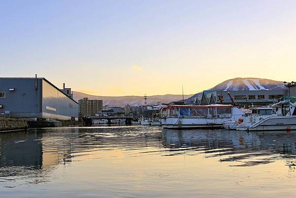 小樽港灣一景,照片右邊的高山就是赫赫有名的天狗山!天狗山上有北海道內最陡的滑雪場,斜面有43度。天狗山同時也可以欣賞小樽市區迷人的夜景,與藻岩山、函館山並列北海道三大賞夜景絕佳景點。